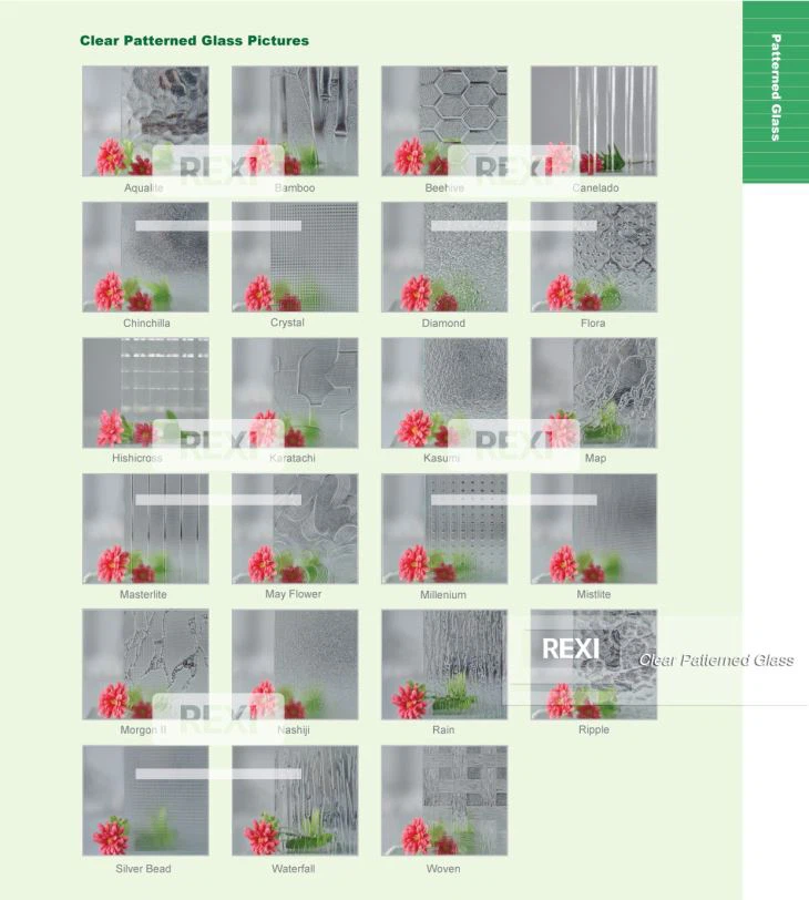 Първо, нека да поговорим за това какво е шарено стъкло. Шаблонното стъкло, известно още като текстурирано или декоративно стъкло, се предлага с различни дизайни и шарки, гравирани или щамповани върху повърхността му. Тези модели могат да варират от прости геометрични форми до сложни флорални мотиви. Не става въпрос само за външен вид; шареното стъкло също предлага уединение и разсейва светлината, което го прави популярен избор за прозорци, врати, прегради и др.